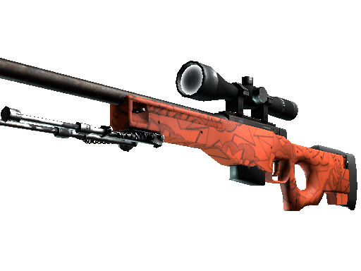 High risk and high reward, the infamous AWP is recognizable by its signature report and one-shot, one-kill policy. It has been painted using a hydrographic printed with comic book onomatopoeia over an orange base coat.