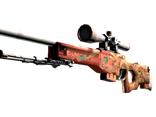High risk and high reward, the infamous AWP is recognizable by its signature report and one-shot, one-kill policy. Gold snakes creep towards the barrel of this custom painted AWP. The scope, barrel, and butt stock have been painted white.