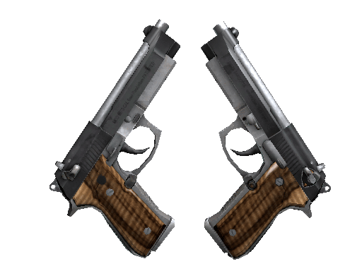 Firing two large-mag Berettas at once will lower accuracy and increase load times. On the bright side, you’ll get to fire two large-mag Berettas at once. This memento from Agency has a dark patina and grips of black limba wood.