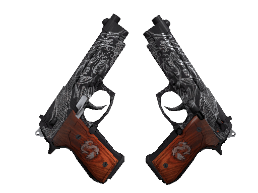 Firing two large-mag Berettas at once will lower accuracy and increase load times. On the bright side, you’ll get to fire two large-mag Berettas at once. It has dragons laser-etched on the slide and barrel.