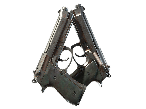 Firing two large-mag Berettas at once will lower accuracy and increase load times. On the bright side, you’ll get to fire two large-mag Berettas at once. The metal of these Dual Berettas has been painted rose gold and the grips are a nacred, deep jade color.