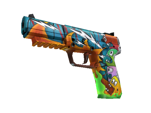 Highly accurate and armor-piercing, the pricy Five-Seven is a slow-loader that compensates with a generous 20-round magazine and forgiving recoil. A brightly colored paint job inspired by street art has been applied.