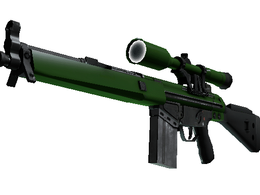 The pricy G3SG1 lowers movement speed considerably but compensates with a higher rate of fire than other sniper rifles. It has individual parts spray-painted solid colors in a green and black color scheme.