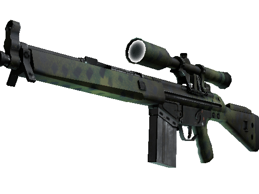 The pricy G3SG1 lowers movement speed considerably but compensates with a higher rate of fire than other sniper rifles. It has been spray-painted using short pieces of tape as stencils.