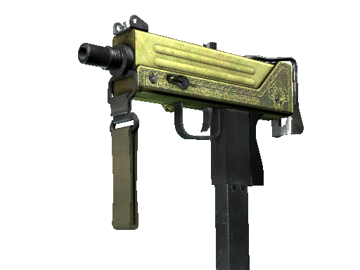 Essentially a box that bullets come out of, the MAC-10 SMG boasts a high rate of fire, with poor spread accuracy and high recoil as trade-offs. This memento from Gwalior has engraved brass parts.